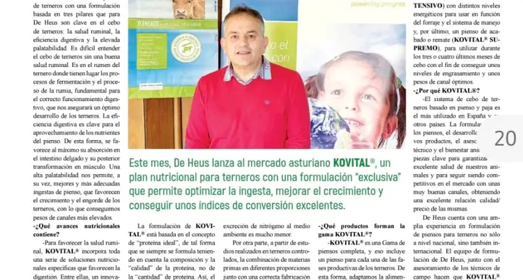 Este mes, De Heus lanza al mercado asturiano Kovital®, un plan nutricional para terneros con una formulación "exclusiva" que permite optimizar la ingesta, mejorar el crecimiento y conseguir unos índices de conversión excelentes.